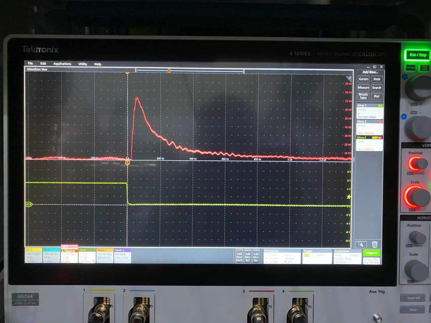 生物成像实验站衍射腔体内的二极管探测器测得的自由电子激光脉冲信号