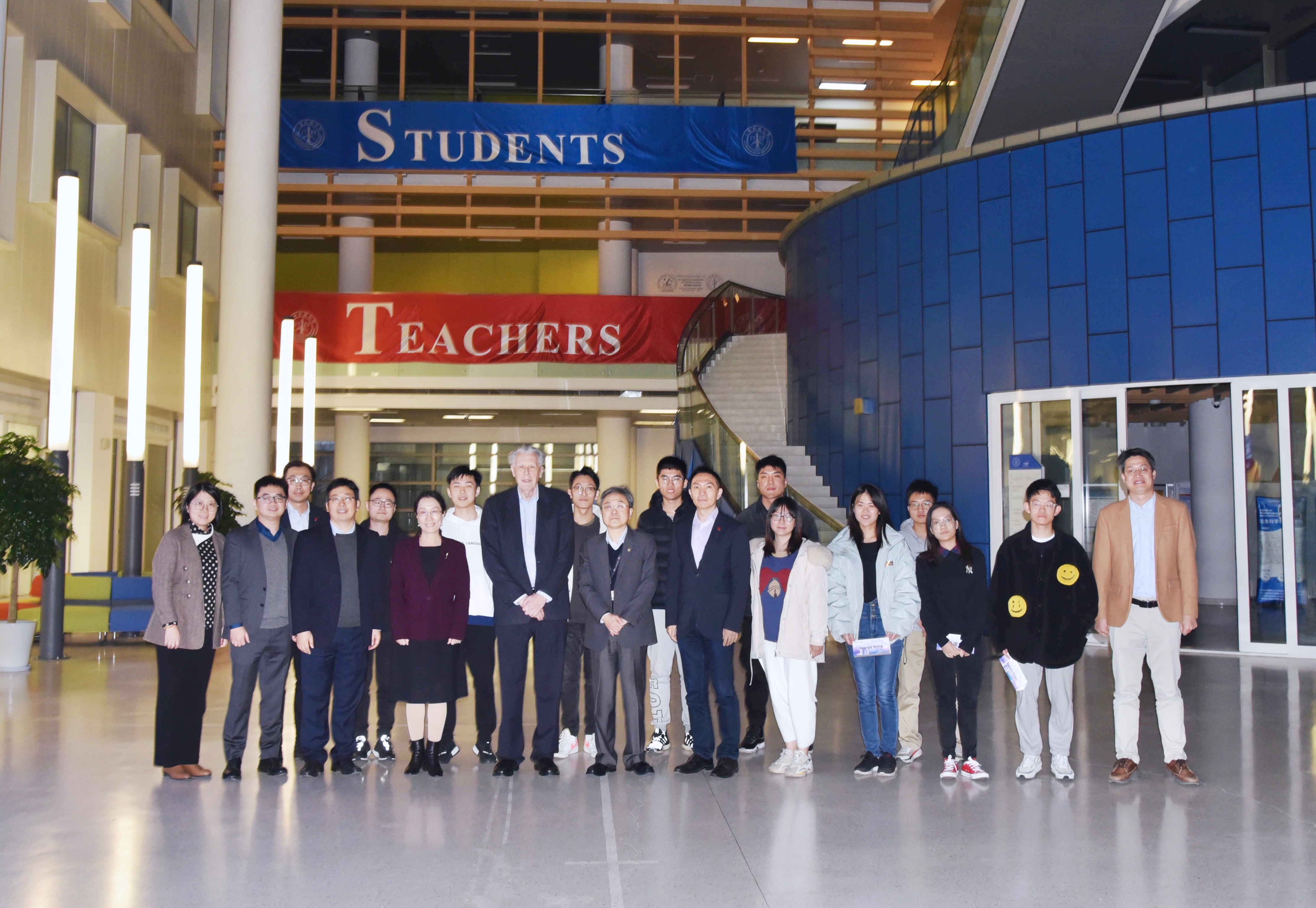 12月7日,图灵奖获得者约翰•霍普克罗夫特(John Edward Hopcroft)与上海交通大学致远学院领导一行来上海科技大学访问。上海科技大学校长江绵恒与约翰•霍普克罗夫特会谈。常务副校长兼教务长印杰主持交流座谈会,国际事务处、教学发展中心等部门领导,信息学院领导及教授、学生代表参与了座谈。
