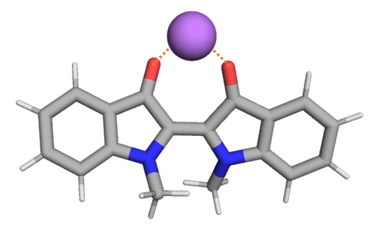 通过进一步的实验和理论计算分析,研究人员发现,这种由阳离子所带来的影响,是由于金属阳离子和靛蓝分子之间的非共价相互作用(图4),稳定了Z状态(介稳态)的结构,使其异构化的速率变慢而导致的。基于上述结论,研究者们设想,类似的手段也可以被推广到其它类型的分子光开关上:通过添加小分子或离子,与光开关主体形成非共价相互作用,进而稳定处于介稳态的分子,实现对其热弛豫速率的调控。
