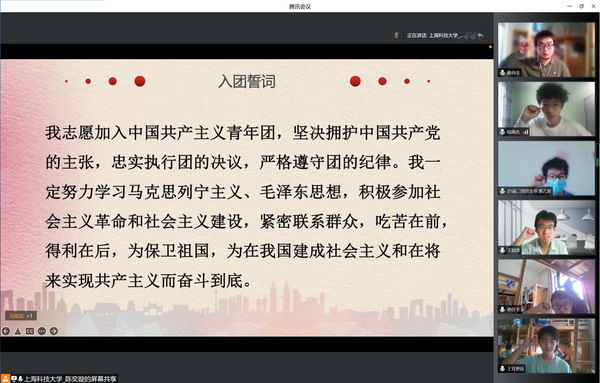 为迎接党的二十大、庆祝建团100周年,进一步引领全校团学骨干坚定信念跟党走、奋进百年再出发,5月7日由共青团上海科技大学委员会主办的“喜迎二十大、永远跟党走、奋进新征程”上海科技大学团学骨干专题学习交流会暨庆祝建团100周年知识竞赛成功在线上举办。学生事务处、校团委、学生会师生代表及全体本研团支书共计100余人参与了本次活动。