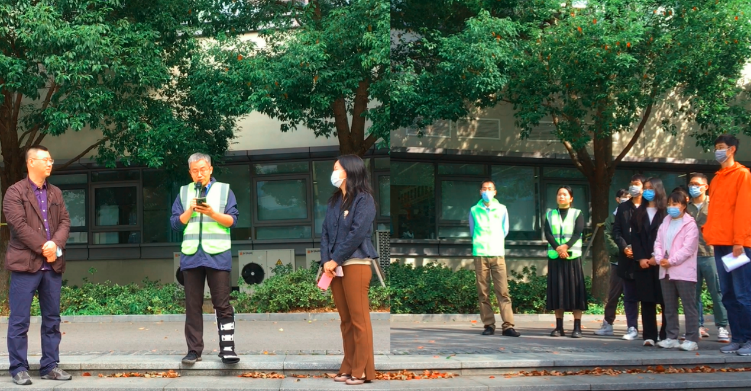 应急疏散完成后在紧急集合现场,iHuman研究所助理所长钟桂生、免化所助理所长雷颖、吴侃、环境安全与健康处处长王东鸣分别对本次应急演练做了现场点评,进一步强调了提升实验室突发事件应急能力、掌握消防应急疏散要点的重要性。iHuman研究所实验室安全主管范菲菲、公共服务处助理处长郑雁鹏、环境安全与健康处助理处长李瑞青、人字楼师生400余人参与演练。