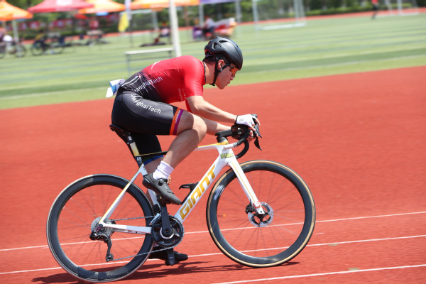本次比赛不分组别,国家队选手、高水平运动员与普通组大学生同场竞技。面对强劲的对手,由10名学生组成的上科大队伍不畏强手、勇于拼搏,展现出了强大的竞技实力和团队精神,共7人9人次获得名次,分别取得男子400米绕圈赛金牌、男子2800米绕圈赛铜牌、男子个人计时赛铜牌、男子大组赛第三名和第四名与团体计时赛第六名的优异成绩。