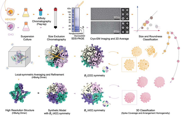 乙肝病毒表面抗原(HBsAg)是决定乙肝病毒(HBV)入侵、复制和包装的关键蛋白,也是诊断感染和评估临床功能性治愈的重要指标。由于其蛋白结构的复杂性和组装形态的多样性,HBsAg的三维结构一直是结构生物学和病毒学长期未解的谜题。