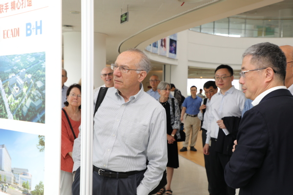 座谈会前,代表团在江舸的陪同下访问了免疫化学研究所、iHuman研究所、生物医学工程学院,了解了上海临床研究中心建设进展。