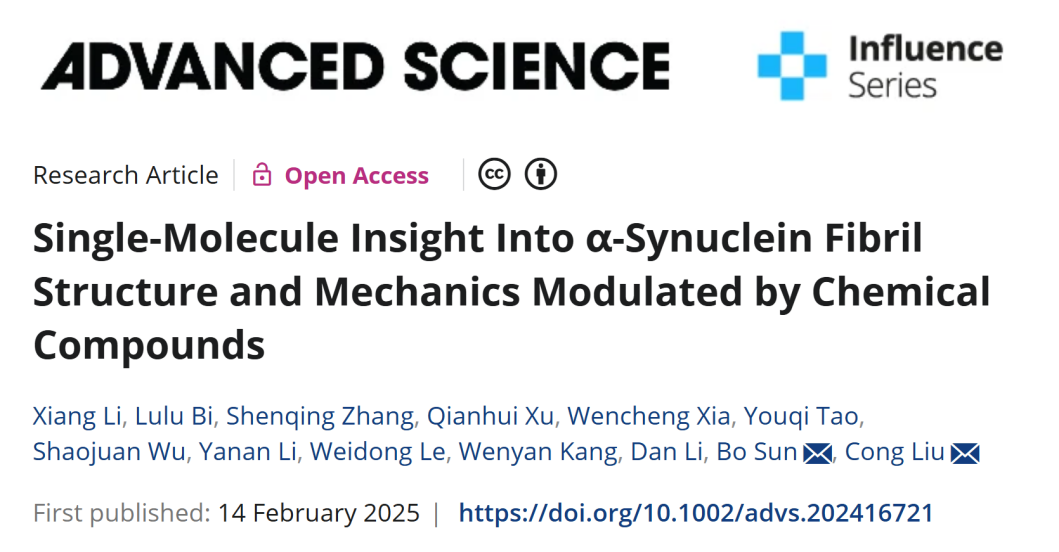 近日,上海科技大学生命科学与技术学院孙博课题组与中国科学院生物与化学交叉研究中心刘聪课题组及中国科学技术大学侯中怀课题组合作,在小分子及致病突变调控帕金森病相关α-突触核蛋白(α-synuclein,α-syn)淀粉样纤维的分子机制研究中取得系列进展,相关成果分别发表于国际学术期刊《先进科学》(Advanced Science)和《聚集体》(Aggregate)。