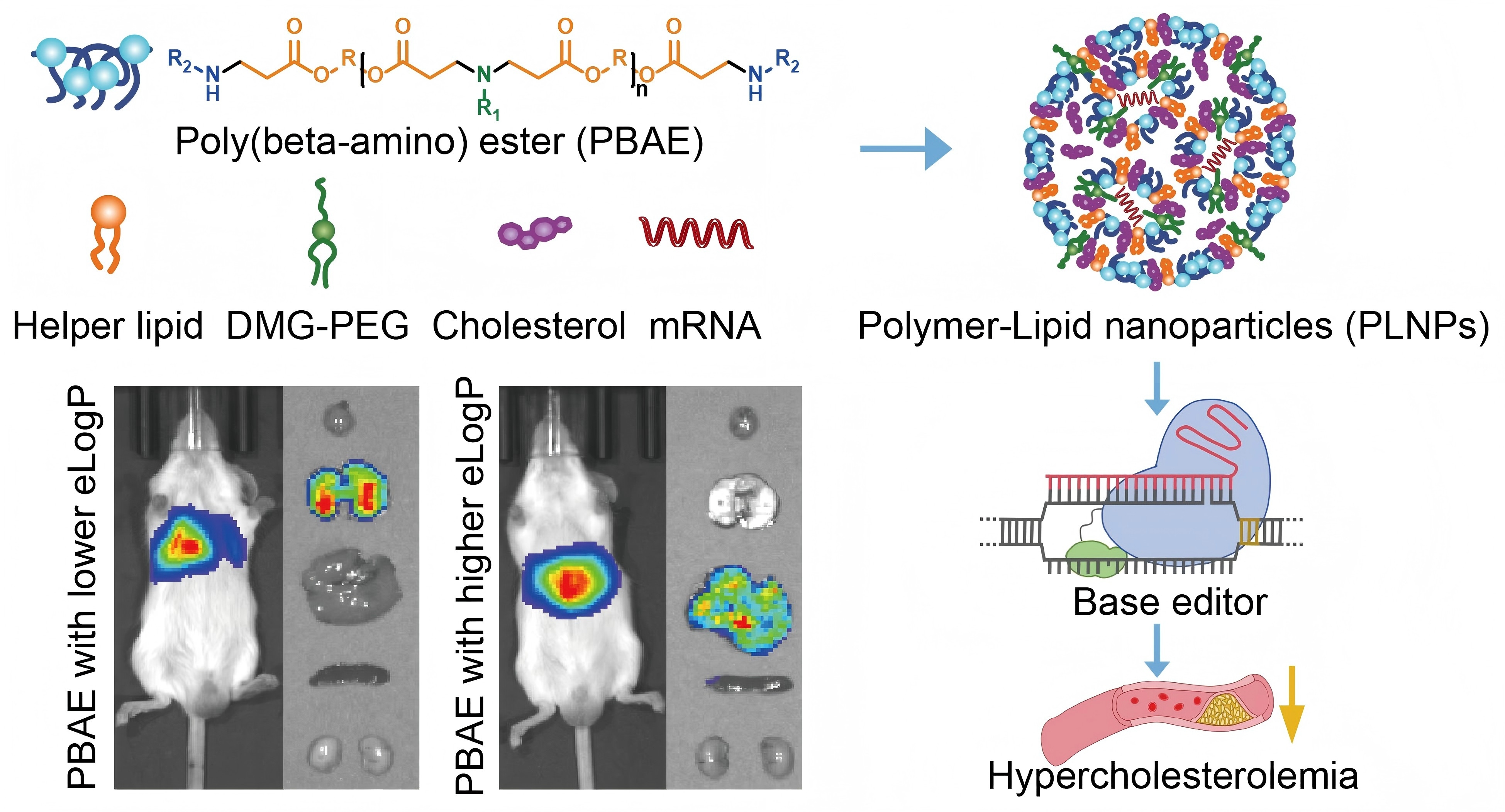 图:聚合物-脂质纳米颗粒构建示意图及其在碱基编辑器递送中的应用。