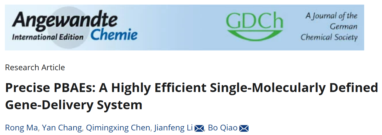 近日,上海科技大学生命科学与技术学院李剑峰课题组与物质科学与技术学院乔博课题组在国际期刊《德国应用化学》 (Angewandte Chemie International Edition)发表了题为“Precise PBAEs: A Highly Efficient Single-Molecularly Defined Gene-Delivery System”的研究论文,报道了一种全新的具有精确分子量、化学结构和拓扑结构的聚β氨基酯(PBAE)合成方法,为基因治疗递送载体的设计提供新策略。