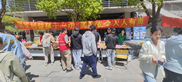 咨询台前,工作人员和校园平安志愿者们热情地向过往师生发放宣传资料,详细讲解国家安全观的大事记、五大要素以及“十个坚持”等重要内容。