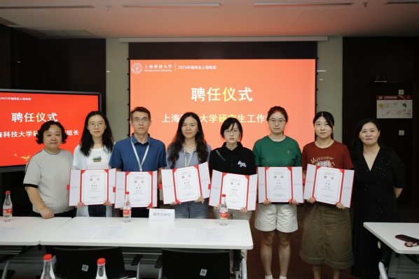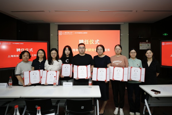 在学研工组长聘任仪式上,周宇和刘勤共同为16名新聘学研工组长颁发聘书。