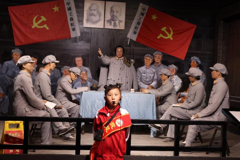 藏族小讲解员向实践团讲述战役历史