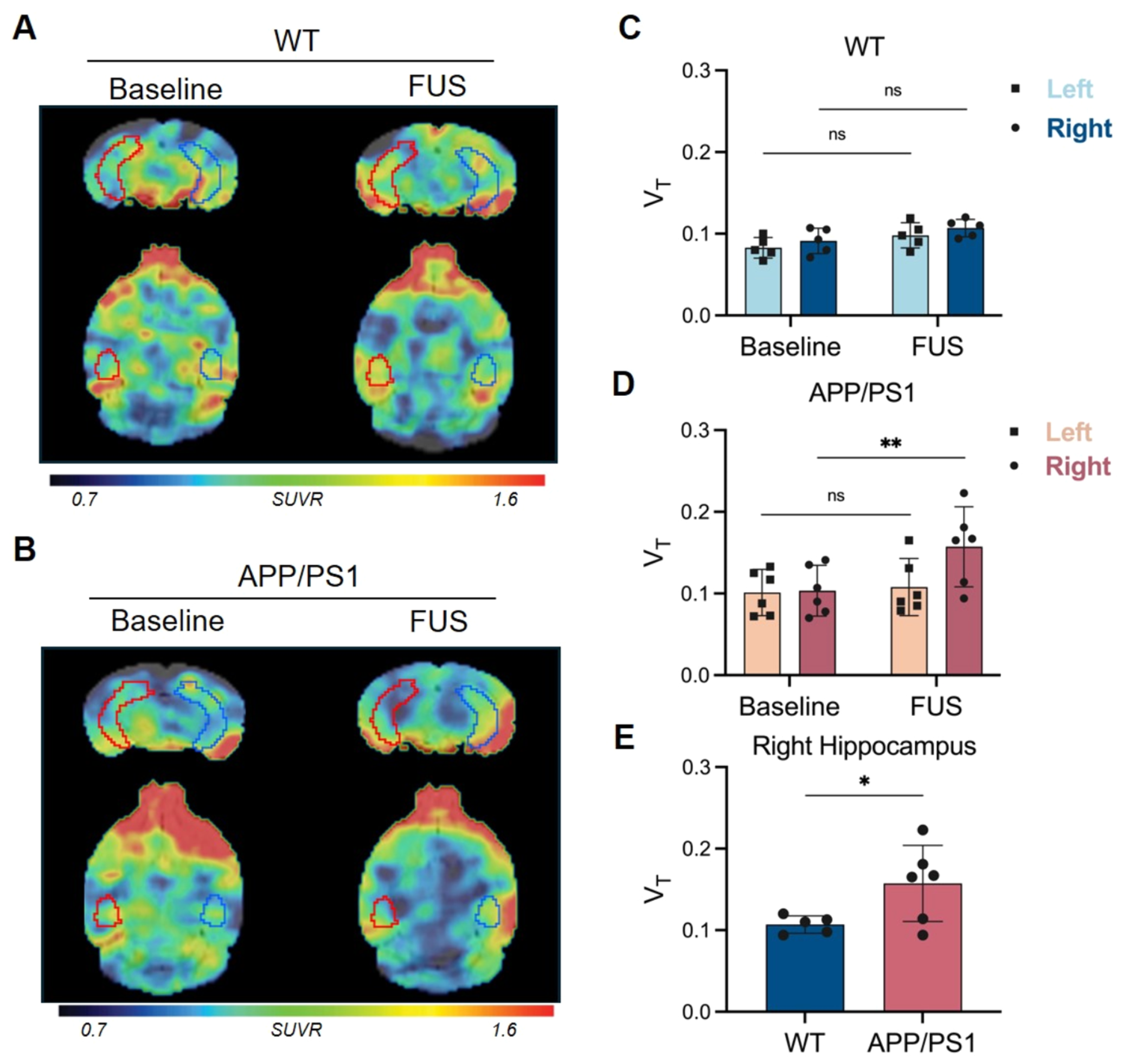 图1:FUS介导的Ga-68放射性显像剂在AD动物模型中的应用