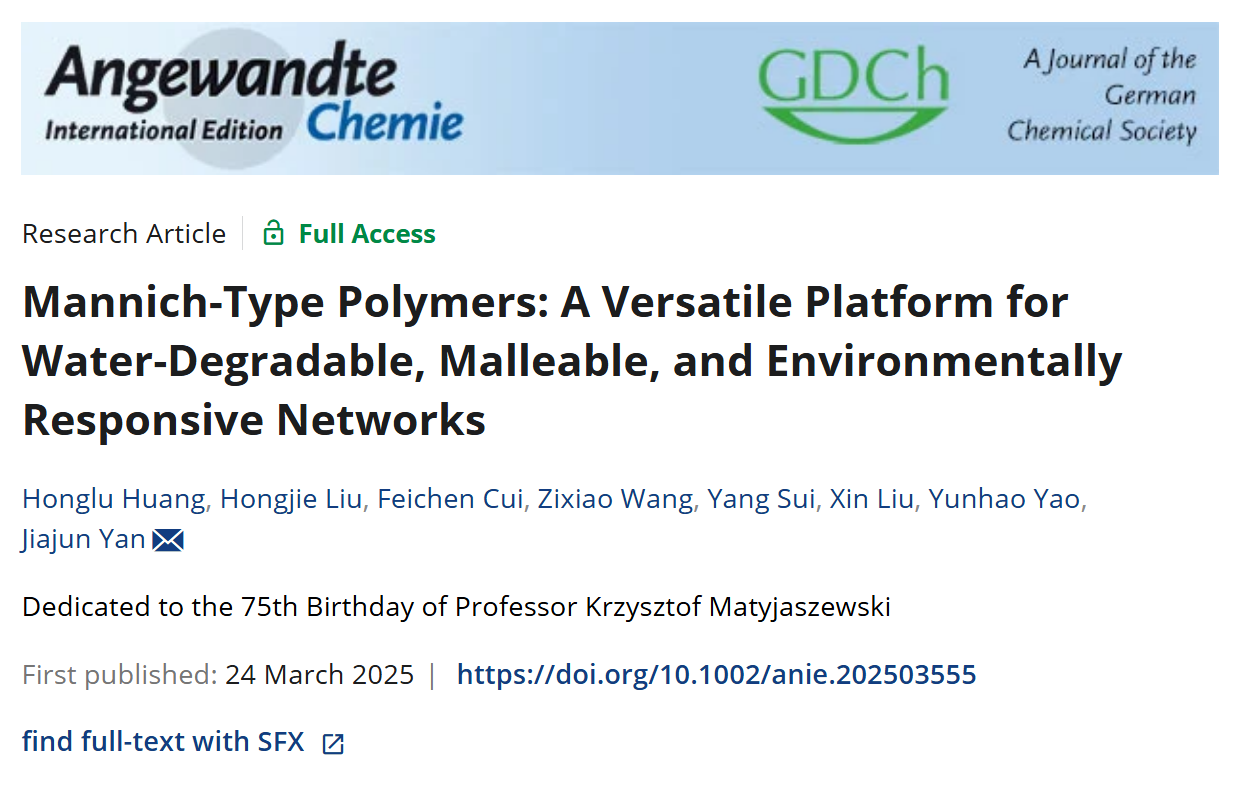 论文标题:Mannich-Type Polymers: A Versatile Platform for Water-Degradable, Malleable, and Environmentally Responsive Networks