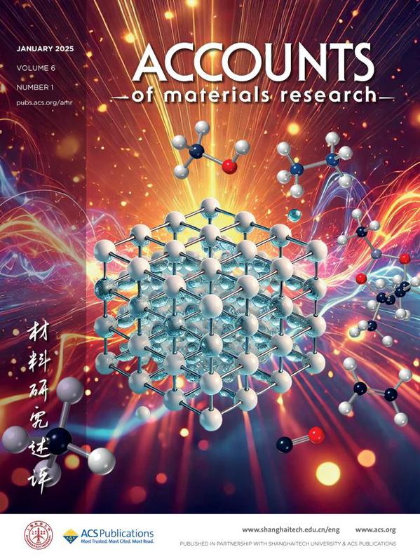 22025年第一期封面文章Activation and Catalysis of Methane over Metal–Organic Framework Materials (Bing An, Yujie Ma, Xue Han, Martin Schröder*, and Sihai Yang*. Acc. Mater. Res. 2025, 6, 1, 77–88. https://doi.org/10.1021/accountsmr.4c00279) 来自北京大学杨四海教授和英国曼彻斯特大学Martin Schröder教授团队,总结了用于吸附和转化甲烷的功能性MOF及其相关材料的设计和开发。作者利用广泛的实验和计算研究,分析了甲烷转化关键反应中活性位点及其微环境在甲烷结合和活化过程中的作用,并讨论了该领域研究的局限性和未来方向。