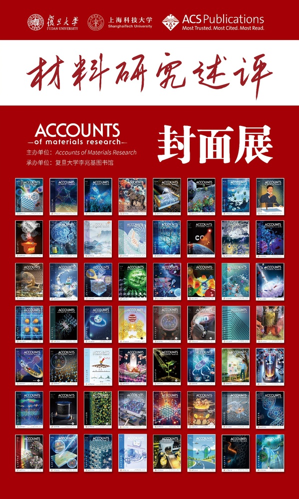 20251010日,《材料研究述评》(Accounts of Materials ResearchAMR)封面展在复旦大学李兆基图书馆开幕。本次展览由AMR与复旦大学李兆基图书馆合作举办,展出了近60AMR期刊封面,涵盖催化材料、多孔材料、微纳材料、光电材料、生物医用材料、储能材料以及新材料设计等主题,也介绍了复旦大学学者发表于AMR的文章,展现了AMR刊出的材料科学与工程领域优秀研究成果,让读者在翻阅典籍之余,近距离感受科学研究与视觉设计的交融之美,更为促进学术交流助力。