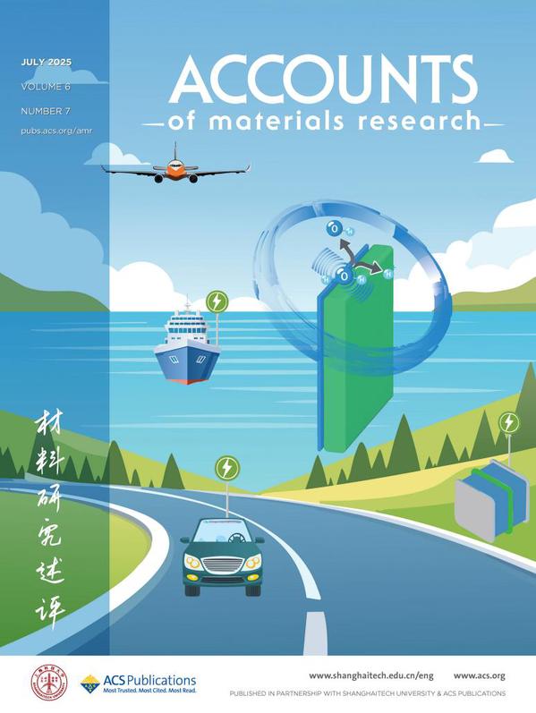 52025年第七期封面文章 Microscale Bipolar Interfaces for High-Power Fuel Cells (Jianping Chen, Kritika Sharma, Zhongyang Wang*, Shrihari Sankarasubramanian*, and Vijay Ramani*. Acc. Mater. Res. 2025, 6, 7, 865–875. https://pubs.acs.org/doi/10.1021/accountsmr.5c00039) 来自美国阿拉巴马大学王中阳教授团队与华盛顿大学Ramani教授、德州大学圣安东尼奥分校Sankarasubramanian教授合作团队,系统总结了微尺度双极界面(PMBI)的设计原理与性能优势,详细讨论了其在直接硼氢化物燃料电池、直接甲醇燃料电池等体系中的应用突破,并对未来自修复界面、光-电耦合调控等发展方向进行了展望。