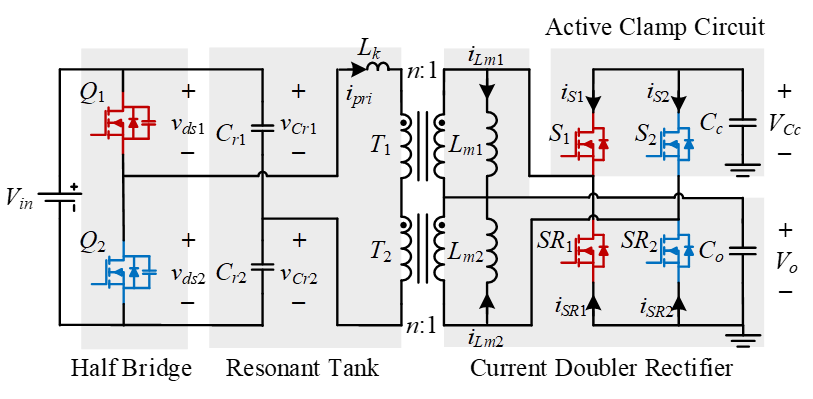 图2. 所提出的基于有源钳位的半桥倍流整流器
