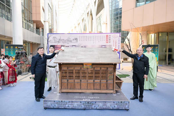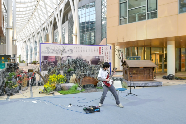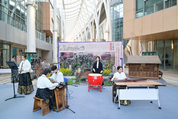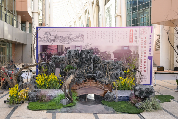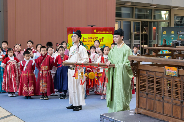 下午4时,传统上梁仪式将活动推向高潮。仪式由人文科学研究院教学助理教授杜雨晴主持,上道书院外聘教师邱俊执礼。校领导封东来、印杰参与上梁环节,崔勇与吴强共同完成封顶仪式。在新建成的古园林建筑前,风雅舞台表演精彩上演。来自上海科技大学附属学校和上海中医药大学民乐协会的同学们分别带来诗词吟诵与民乐演奏,实现诗乐交融的雅韵传承。表演间隙,现场播放了《非遗正年轻》主题短片。