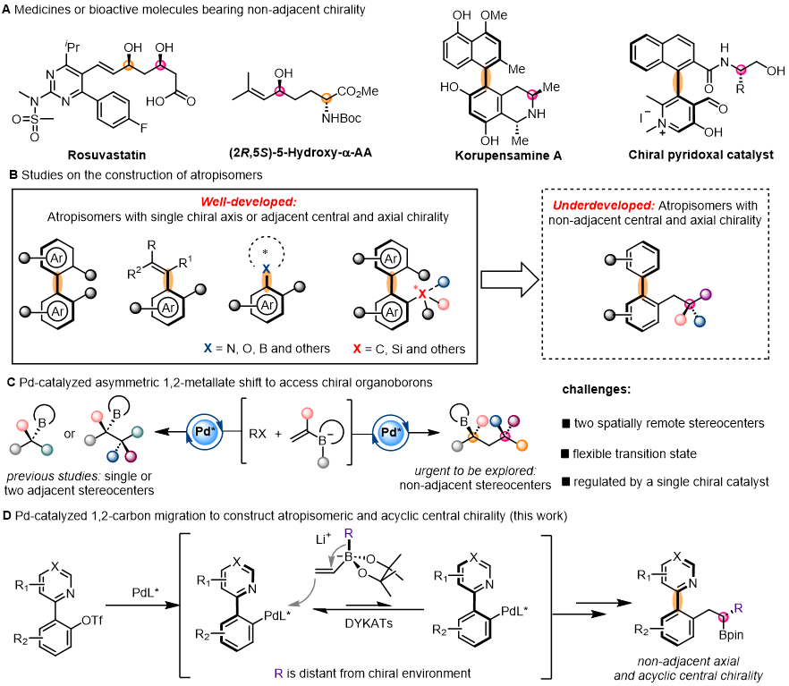 论文标题:Asymmetric synthesis of chiral boronic esters featuring non-adjacent axial and flexible, acyclic central chirality