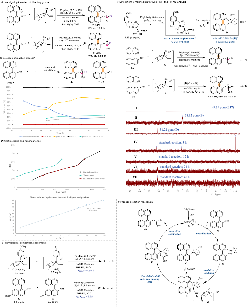 机理研究表明,反应通过Pd(II)中间体进行,其中1,2-金属盐重排为该反应的速率决定步骤。此外,所得产物可进一步通过多样化转化,构建多种非相邻手性元素的功能分子。