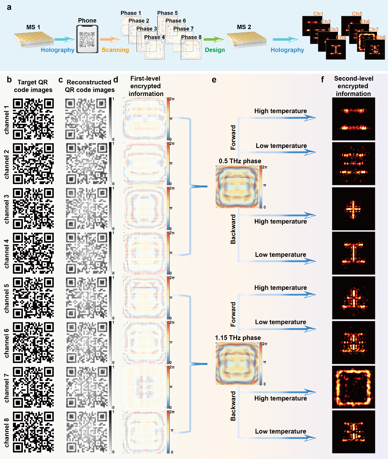 在高安全性信息加密领域,传统加密方法通常依赖于电子计算与静态密钥机制,在面对高强度算力攻击时,存在被破解的隐患。太赫兹(THz)波因其宽带宽与高穿透性等物理特性,被视为实现高容量信息存储与加密的潜在路径之一。然而,传统太赫兹器件的功能在制备后即固定,难以实现动态加密与密钥更新需求。在此背景下,具备灵活波前调控能力的超表面技术展现出应用潜力。