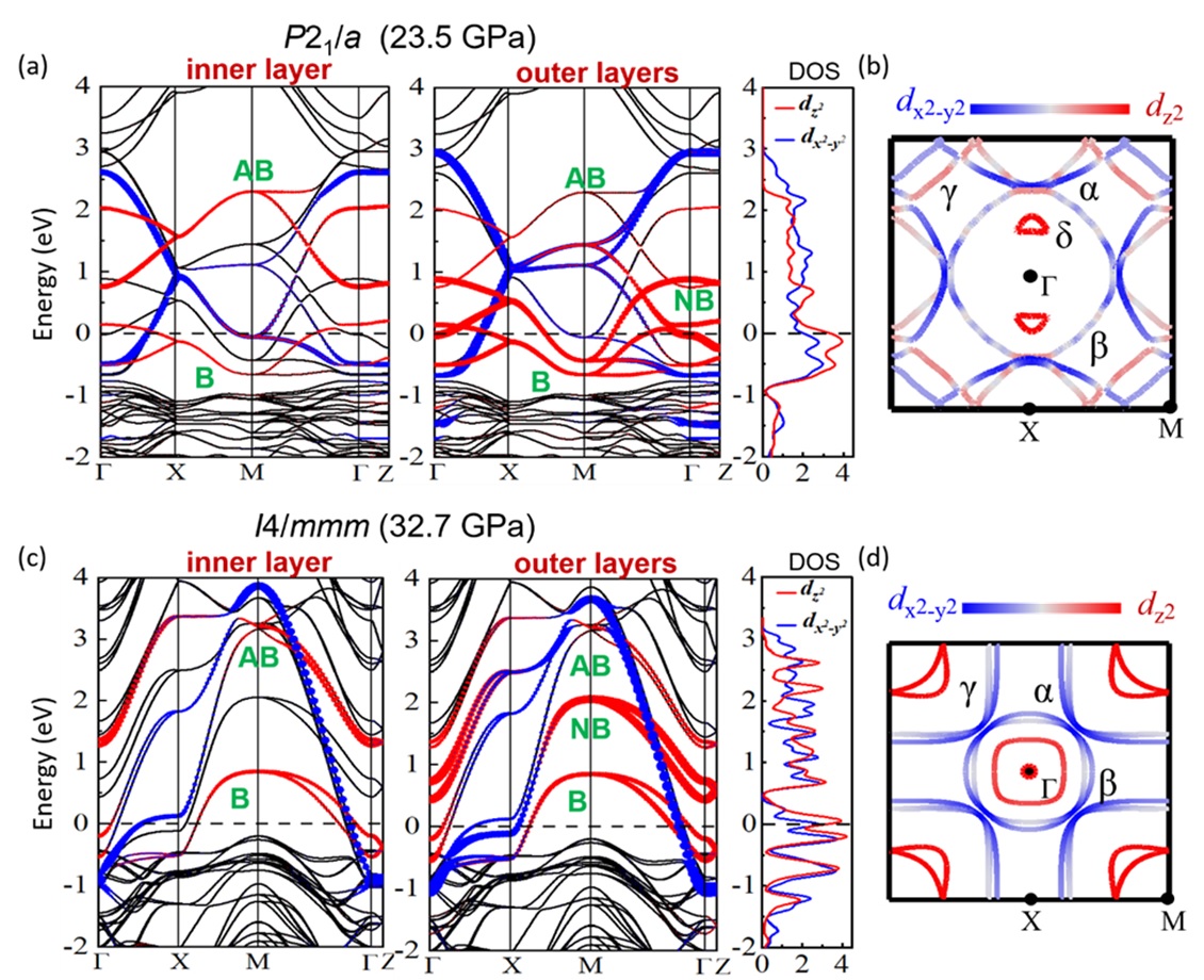 图3:Pr4Ni3O10单晶在压力下的电子结构与费米面