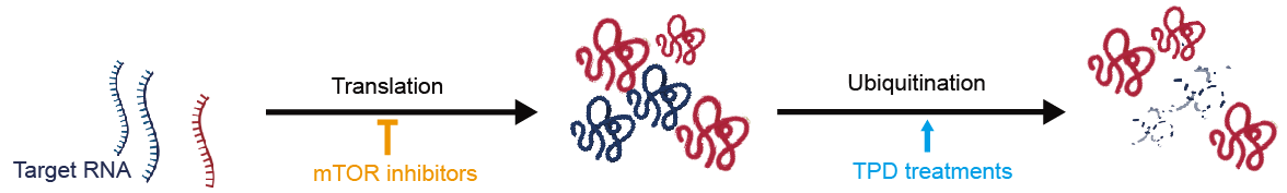 图1. 本研究作用机制示意图:mTOR抑制剂通过抑制蛋白合成,协同增强TPD药物对靶蛋白的清除效率