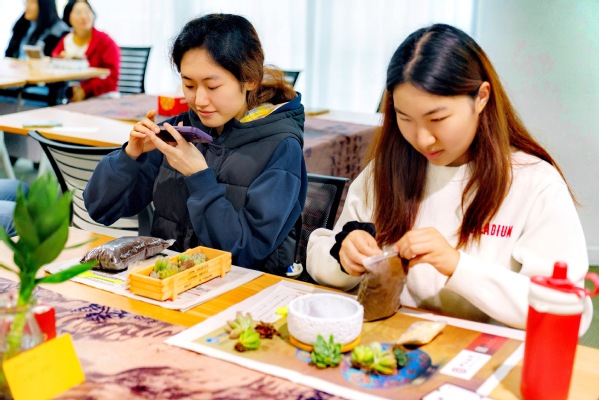 互动环节“方寸见文学,掌心生绿意”将现场气氛推向高潮。参与者以手中附有名著金句的书签为“入场券”,通过朗读句子寻找持有相同句子的伙伴,在趣味中打破隔阂,结成队伍。随后进入文学知识竞答环节,题目均出自中外名著的开篇或结尾,从《百年孤独》到《小王子》,从《红楼梦》到《安娜·卡列尼娜》,师生们在抢答中重温经典,赢取花盆、摆件等种植材料。各组协作完成多肉微景观的种植,并为作品赋予充满书卷气的名字。方寸之间,文学与绿意交融,知识与创意共生。