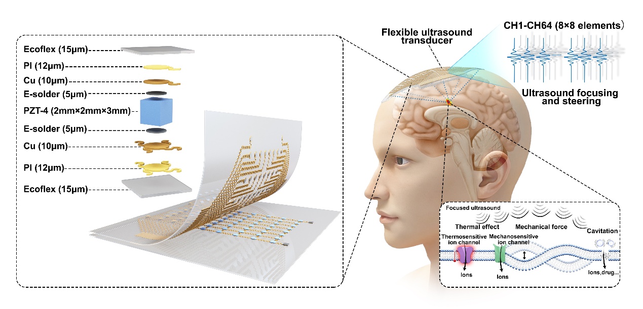 该研究为柔性超声器件在脑科学和生物医学工程领域的应用拓展了新的方向,也为可穿戴、可重复使用的无创经颅超声治疗系统研发提供了技术基础。